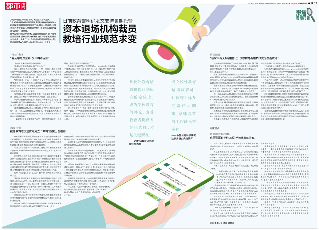 2021年暑假,补习班“抢人”大战没有高调上演。7月9日教育部发布通知明确,引导支持有条件的地方积极探索开展暑期托管服务工作。早在一周多前,全国多地已官宣启动小学暑假托管班,这被视为落实“双减”政