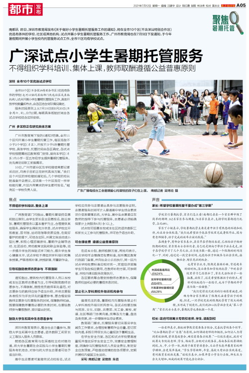 广深试点小学生暑期托管服务