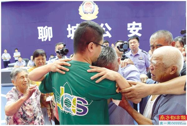 山东聊城,头发花白的郭刚堂和妻子张文革紧紧抱着儿子郭新振,痛哭失声。张文革不停地说:“我的宝贝,找回来了,我的儿啊,我的儿!”