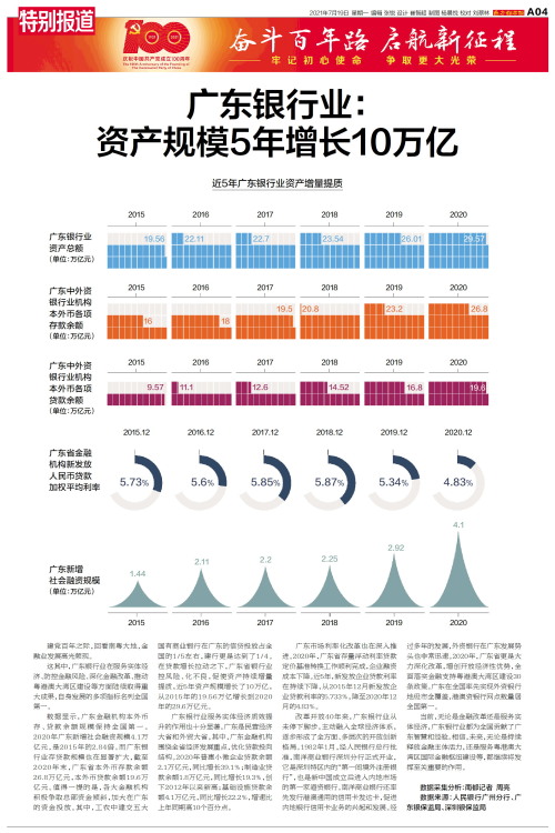 建党百年之际,回看南粤大地,金融业发展高光频现。 这其中,广东银行业在服务实体经济、防控金融风险、深化金融改革、推动粤港澳大湾区建设等方面陆续取得重大成果,自身发展的多项指标名列全国第一。 数