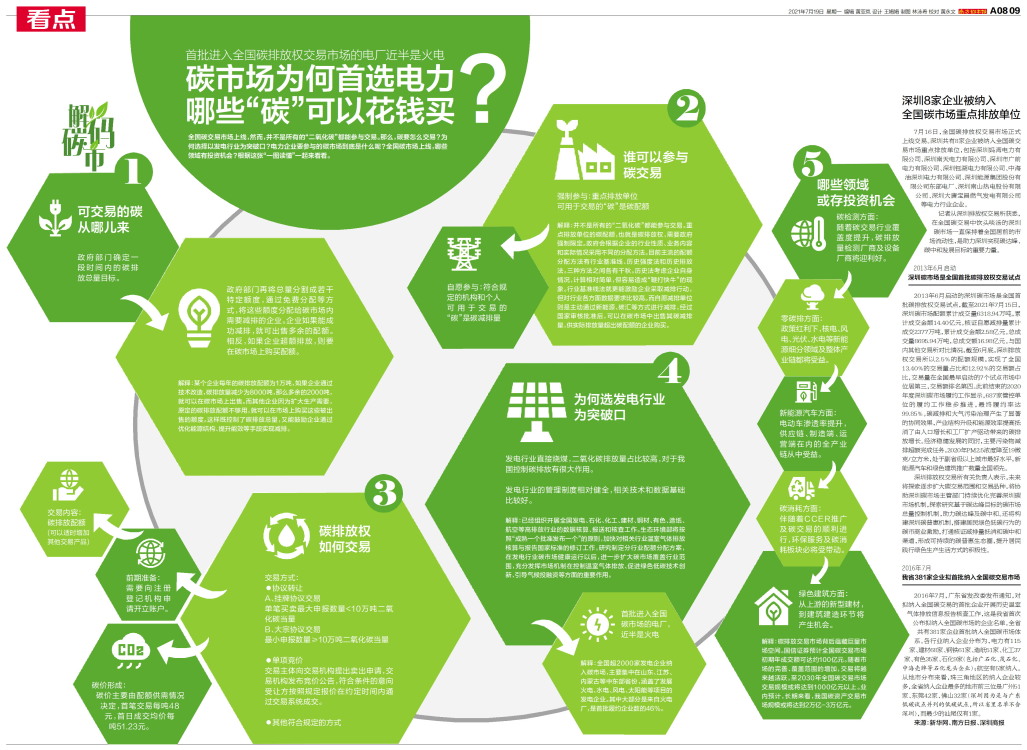7月16日,全国碳排放权交易市场正式上线交易。深圳共有8家企业被纳入全国碳交易市场重点排放单位,包括深圳妈湾电力有限公司、深圳南天电力有限公司、深圳市广前电力有限公司、深圳钰湖电力有限公司、中海油