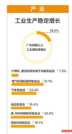 广东工业生产稳定增长,制造业持续恢复。上半年,广东规模以上工业增加值1.72万亿元,同比增长18.5%,两年平均增长5.3%。