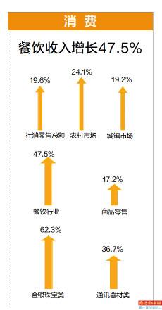 消费市场回温还体现在两个方面:日常消费趋于稳定。烟酒、日用品类商品零售额同比分别增长39.7%和16.0%。消费升级类商品零售持续较快增长,金银珠宝类、通信器材类零售额同比分别增长62.3%、36.7%。