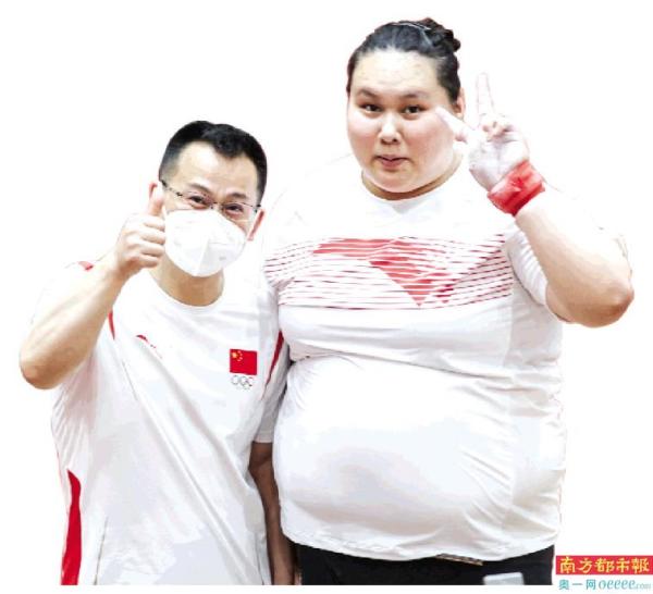 7月20日,中国女举主教练张国政和队员李雯雯在热身训练中。李雯雯在女举87公斤以上级这个项目中几无对手。 新华社发