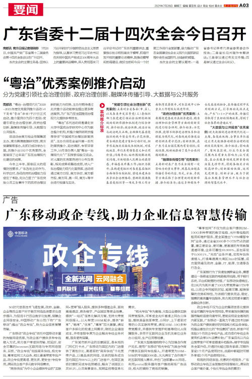 专题 5G时代信息技术飞速发展,政府、金融、企业等政企客户对于数字网络品质要求也逐步提升。为促进千行百业数字化发展,保障企业网络安全,中国移动广东公司(下称“广东移动”)推出“政企专线”,助力企