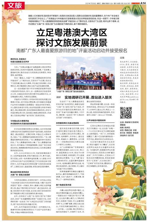 随着人们对美好生活的需求不断提升,优质的文旅活动是人民群众实现美好生活的重要推手。在今年广东全省文化和旅游工作会议上,广东更提出今年将重点打造粤港澳大湾区世界级旅游目的地,在这一背景下,今年南方都