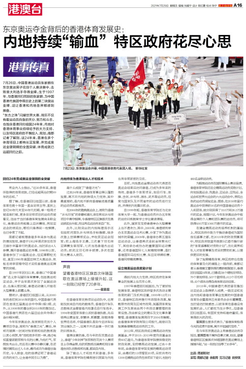 7月26日,中国香港运动员张家朗在东京奥运男子花剑个人赛决赛中,击败意大利选手夺得金牌。生于1997年、与香港回归同龄的张家朗,为中国香港代表团夺得历史上的第二块奥运金牌,这让香港和内地各界都感到