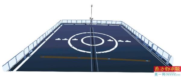 加长飞行甲板 舰尾加长的飞行甲板,可起降新型反潜直升机。