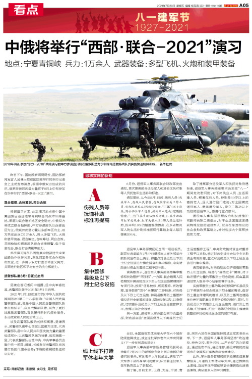 昨日下午,国防部新闻局局长、国防部新闻发言人吴谦大校在国防部举行的例行记者会上主动发布消息,根据中俄双方达成的共识,俄罗斯联邦武装力量将于8月上中旬参加在华举行的“西部·联合-2021”演习。混合