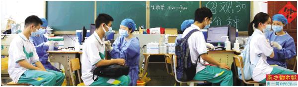 7月27日-28日,广州市海珠区为15-17岁学生安排专场,在南武中学等5间学校设置临时接种点,为辖区内23所高中及中职学校共近1.9万人开展疫苗接种。 南方日报记者 符超军 摄