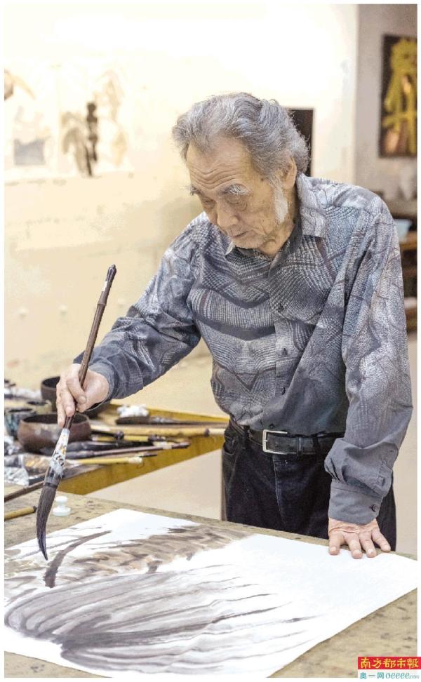 郭莽园近期在创作中。 摄影/视频:南都记者 刘宝洋