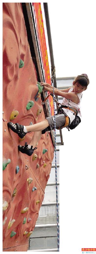 每到周末,深圳南山区花园城中心都是附近居民亲子出游的好去处,而那些被父母牵着手逛商场的孩子们,总会不自觉地为商场门口一面16米高的攀岩墙所吸引,停下脚步仰视注目。有大胆的孩子指着岩壁跃跃欲试,但更多的孩子都是露出一丝畏惧的表情。