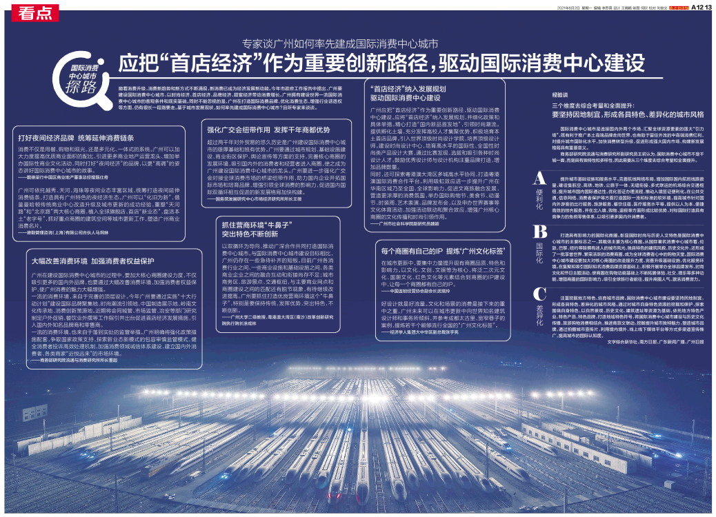 随着消费升级,消费新趋势和新方式不断涌现,新消费已成为经济发展新动能。今年市政府工作报告中提出,广州要建设国际消费中心城市,以时尚经济、首店经济、品牌经济、甜蜜经济带动消费增长。广州拥有建设世界一