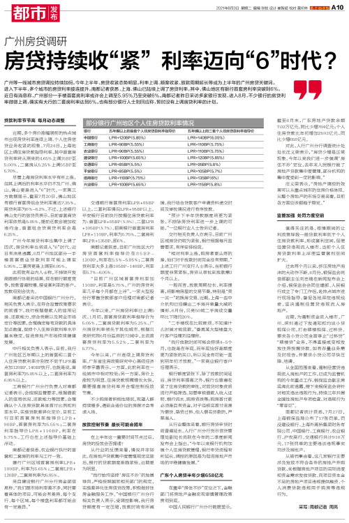 广州等一线城市房贷调控持续加码。今年上半年,房贷收紧态势明显。利率上调、额度收紧、放款周期延长等成为上半年的广州房贷关键词。进入下半年,多个城市的房贷利率接连提升。南都记者获悉,上海、佛山已陆续上