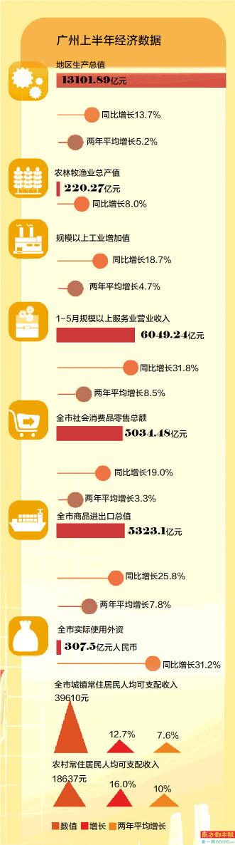2021年上半年,GDP同比增长13.7%,两年平均增长5.2%,这些数据表明广州将疫情层层压实防疫责任,将负面影响降到最低。7月23日,广州市政府新闻发布会详细披露了全市经济运行的有关数据。