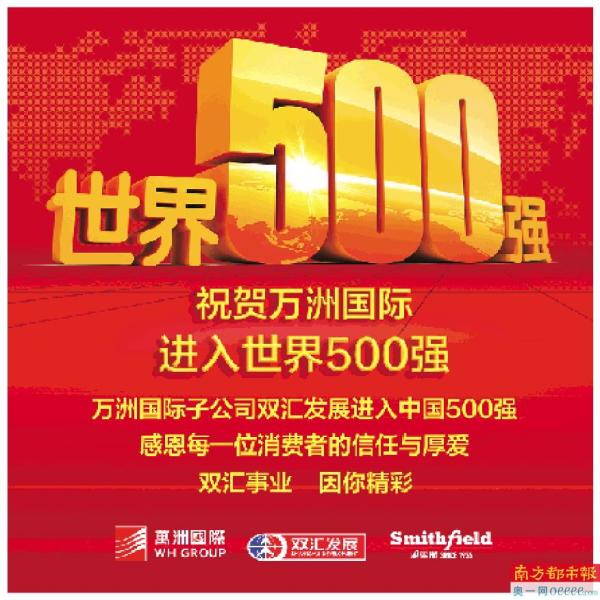 8月2日,财富Plus全球同步发布了最新的《财富》世界500强排行榜,双汇母公司万洲国际入选该榜单,排名为第474位。