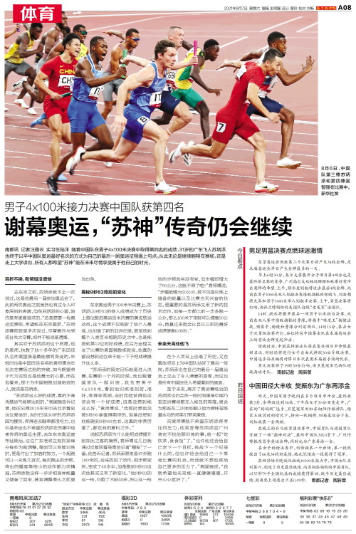南都讯 记者汪雅云 实习生陆洋 随着中国队在男子4x100米决赛中取得第四名的成绩,31岁的广东飞人苏炳添也终于以平中国队奥运最好名次的方式为自己的最后一届奥运征程画上句点。从此无论是继续翱翔在赛