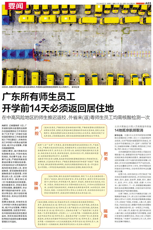 南都讯 记者董晓妍 6日,广东省新冠肺炎疫情防控指挥办校园疫情防控工作专班印发了《关于进一步做好当前校园疫情防控工作的紧急通知》(下称《通知》),所有师生员工开学前14天务必返回居住地,减少外出与