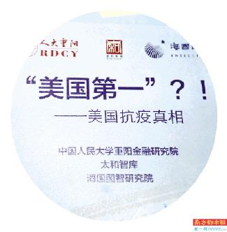 8月9日,全球智库界首份关于美国抗疫真相的研究报告《“美国第一”?!美国抗疫真相》(以下简称《报告》)在北京发布。在《报告》的发布会上,中国人民大学重阳金融研究院(人大重阳)执行院长王文作为发起人,用“八个第一”形容美国抗疫真相。他说,美国是当之无愧的全球第一抗疫失败国、政治甩锅国、疫情扩散国、政治撕裂国、货币滥发国、疫期动荡国、虚假信息国、溯源恐怖主义国。