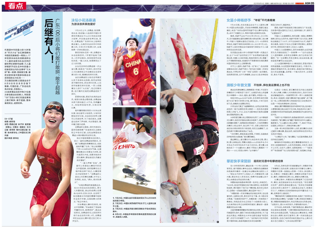 代表团中年龄最小的14岁跳水“天才少女”全红婵用教科书级的完美表现一鸣惊人;17岁的游泳运动员汤慕涵拼出个人最好成绩与队友共同打破世界纪录勇夺金牌;三人篮球杨舒予在队伍中年龄最小但表现突出与队友勇