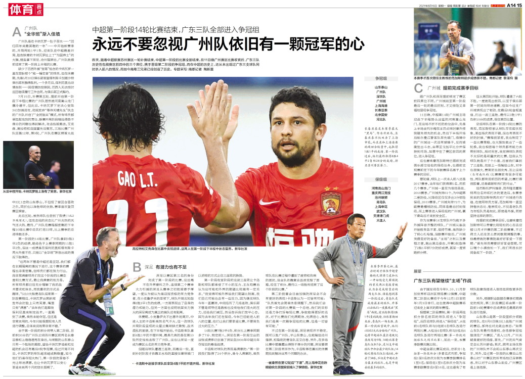 昨天,随着中超联赛苏州赛区一轮补赛结束,中超第一阶段的比赛全部结束。在11日晚广州赛区比赛收官后,广东三队历史性包揽赛区前四中的三个席位,携手晋级第二阶段的争冠组。而在中超的历史上,还从未出现过广