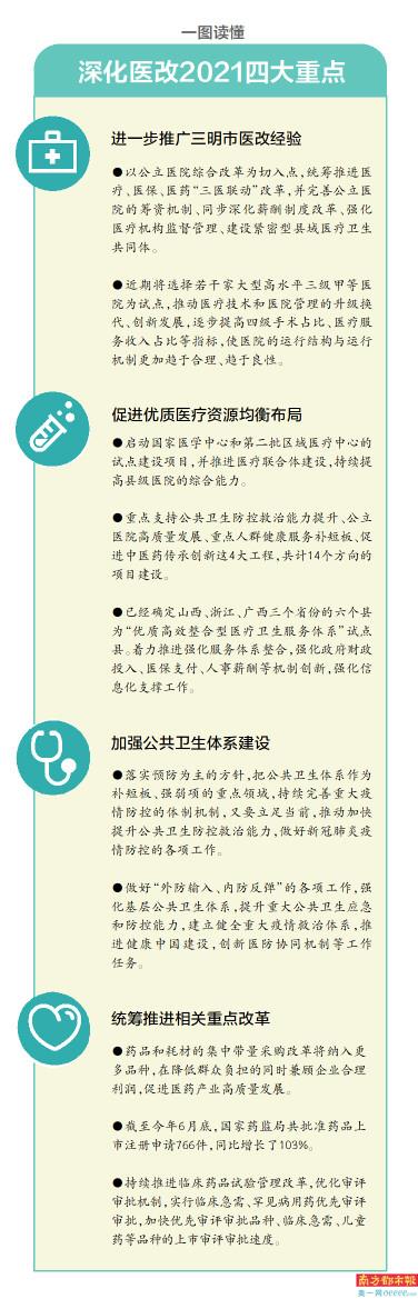 [调查] 2016年以来,中央深改委(深改组)会议多次听取三明医改汇报,对三明医改成效和探索的一系列做法给予充分肯定,并明确要在全国推广。2019年11月,国务院深化医药卫生体制改革领导小组印发《关于进一步推广福建省和三明市深化医药卫生体制改革经验的通知》,要求充分发挥典型经验对全局改革的示范、突破、带动作用。今年7月,国务院提出,要适应人民群众对健康的新期待,把推广三明经验作为深化医改的重要抓手,推动医改继续向新的领域拓展。