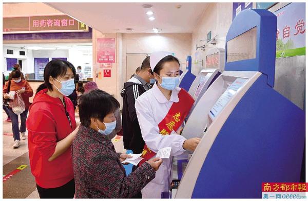 三明市第一医院志愿者协助居民打印取药单。 新华社发