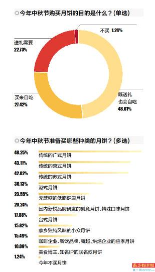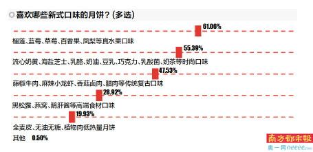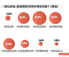 调查发现,包装设计上,49.52%的受访者希望月饼包装能够“有创意,个性化设计”,49.45%的人喜欢简单简洁、不过度浪费的包装,还有47.96%的受访网友期待包装融入动漫主题、大牌设计师等时尚元素。