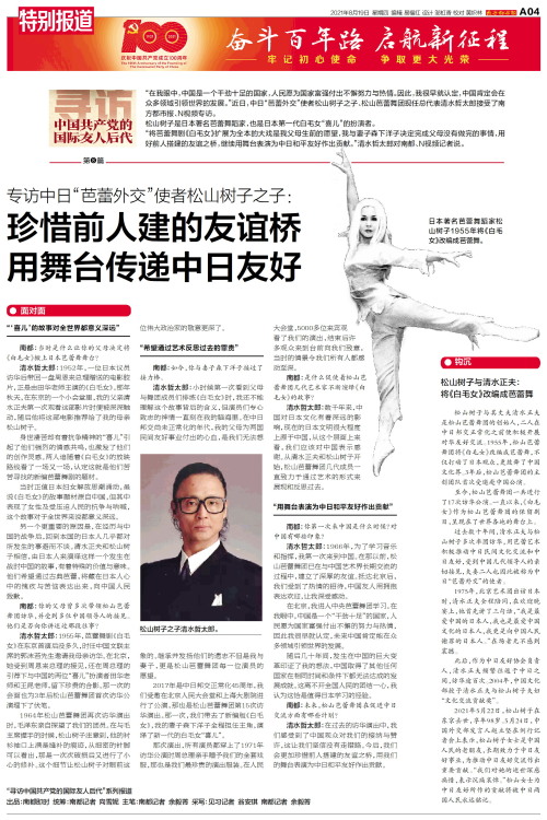 “在我眼中,中国是一个干劲十足的国家,人民愿为国家富强付出不懈努力与热情。因此,我很早就认定,中国肯定会在众多领域引领世界的发展。”近日,中日“芭蕾外交”使者松山树子之子、松山芭蕾舞团现任总代表清