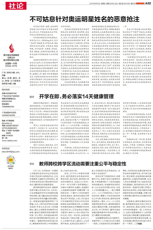 短评 转眼新学期就要到了,为做好校园的疫情防控,广东省新冠肺炎疫情防控指挥办校园疫情防控工作专班印发了《关于进一步做好当前校园疫情防控工作的紧急通知》,要求各地各校抓实抓细各项防控措施,分级分类