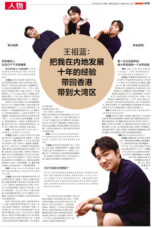 事业版图 找到接班人,比自己干下去更重要 南方都市报(以下简称南都):今年你在内地的工作节奏作出了调整,为什么舍弃部分内地市场,回归TVB出任首席创意官? 王祖蓝:其实去年我接了蛮多的节