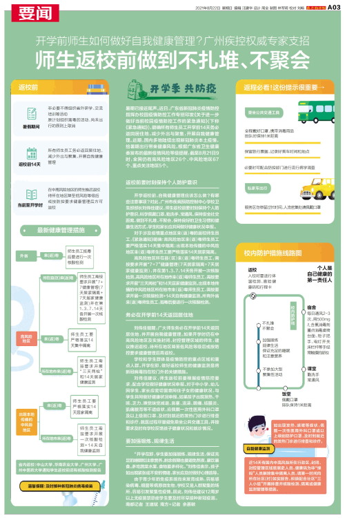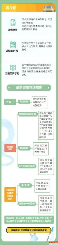 暑期已接近尾声。近日,广东省新冠肺炎疫情防控指挥办校园疫情防控工作专班印发《关于进一步做好当前校园疫情防控工作的紧急通知》(下称《紧急通知》),明确所有师生员工开学前14天务必返回居住地,减少外出