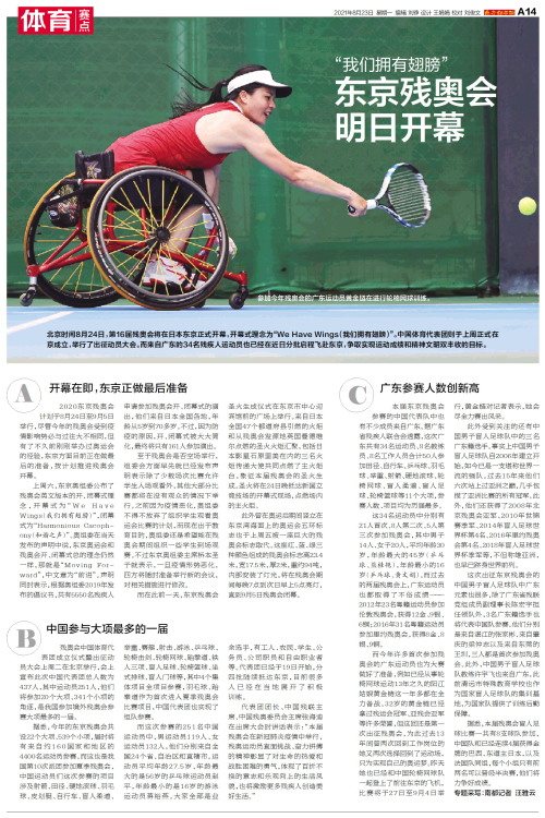 北京时间8月24日,第16届残奥会将在日本东京正式开幕,开幕式理念为“We Have Wings(我们拥有翅膀)”。中国体育代表团则于上周正式在京成立,举行了出征动员大会。而来自广东的34名残疾人