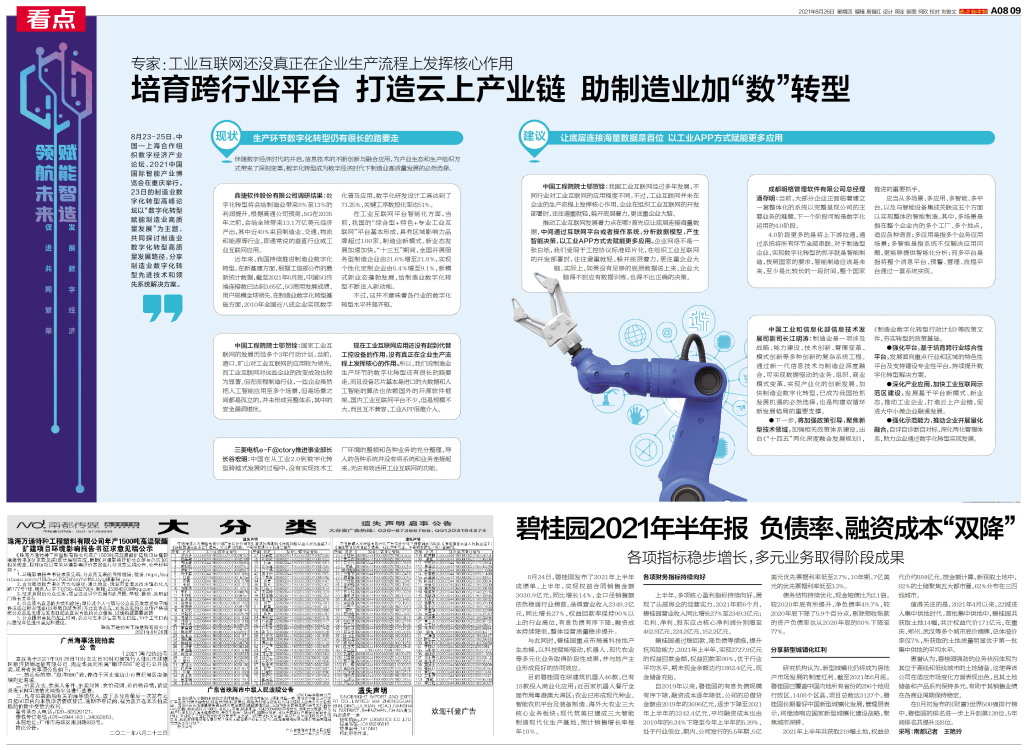 与此同时,碧桂园重点布局高科技地产生态链,以科技赋能驱动,机器人、现代农业等多元化业务取得阶段性成果,并与地产主业形成良好的协同效应。