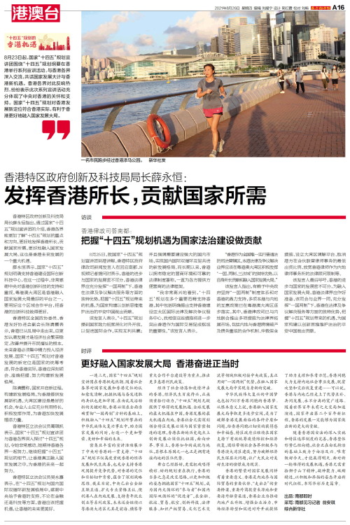 8月23日起,国家“十四五”规划宣讲团围绕“十四五”规划纲要在香港举行系列宣讲活动,与香港各界深入交流,共话国家发展大计与香港新机遇。香港各界对此反响热烈,纷纷表示此次系列宣讲活动充分体现了中央对