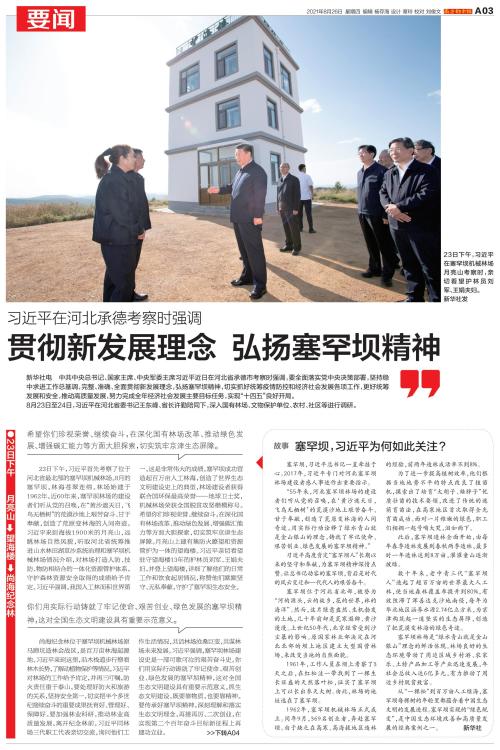 23日下午,习近平在塞罕坝机械林场月亮山考察时,亲切看望护林员刘军、王娟夫妇。 新华社发 新华社电 中共中央总书记、国家主席、中央军委主席习近平近日在河北省承德市考察