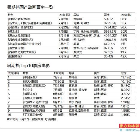 以此回望暑期档一开始的情况似乎恍如隔世,彼时,“56部电影定档”的消息曾冲上热搜,引发网友焦虑“一天一部都看不完”。随着疫情反复、大片撤档,暑期档前景风雨飘摇。瞄准暑期档客户群的超10部动画电影中仅“青蛇”跑出,目前收获5.4亿票房;《中国医生》虽位居暑期档票房榜首,却远没达到出品方的票房期待。在此情况下,暑期档尾声上线的进口片能否拯救票房?9月的电影市场是否可以期待? 专题采写:林文琪 任婷