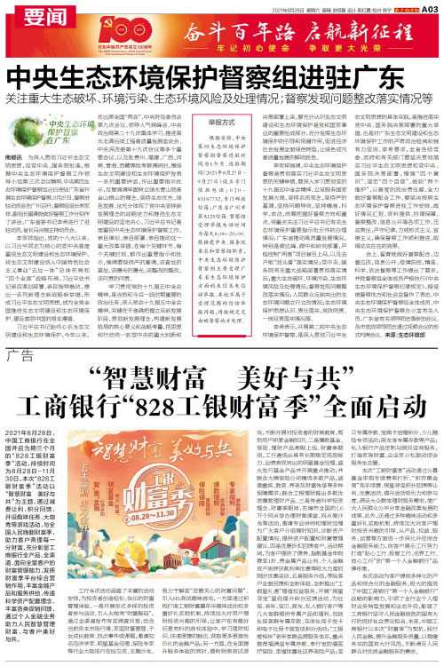 南都讯 为深入贯彻习近平生态文明思想,经党中央、国务院批准,根据中央生态环境保护督察工作领导小组第三次会议精神,中央第四生态环境保护督察组近日进驻广东省开展生态环境保护督察。8月27日,督察进驻动