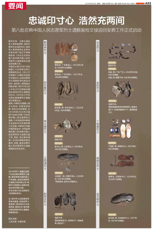 新华社电 记者从退役军人事务部获悉,按照中韩双方达成的共识,退役军人事务部牵头