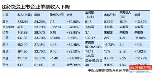 多个快递企业近日发布2021年上半年业绩。南都记者梳理发现,上半年,快递企业的盈利状态普遍承压,同比均出现下降,4家出现了亏损。除了产能投入前置外,快递市场价格保持低位运行,叠加上半年整体业务量规模不及预期,更直接令部分公司经营业绩承压。