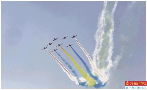 第十二届中国国际航空航天博览会上,八一飞行队的歼10战机飞行表演。 南都记者 吴进 摄