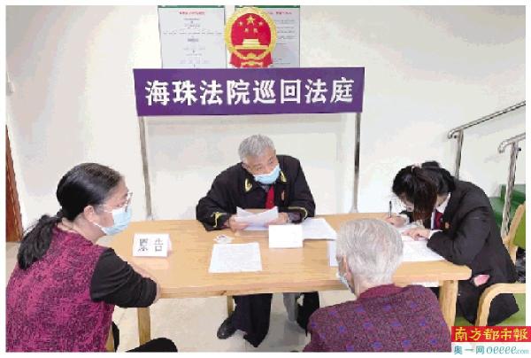 “所谓派出法庭,就是法院派出到人民群众中去的法庭,把法庭搬到群众身边,方便群众诉讼,减少群众诉累”。在审理一起监护权纠纷案过程中,邝荣勋发现被监护人已经90多岁,考虑到当事人年事已高、行动不便,邝荣勋当即决定前往被监护人所在的养老院设置巡回法庭开庭,方便老人家参与诉讼。