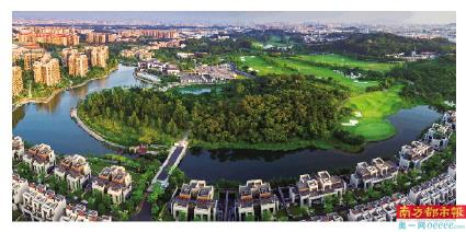 除了与凯旋新世界同款的广粤国际交流中心,广佛天地商业街、广粤国际公馆等国际品质生活配套外,广佛新世界这个占地4500亩的生态住区只用1/3的面积建房子,另2/3的占地中有1100亩高尔夫球场、500亩大浩湖湖泊体系、700亩五彩森林、20公里绿道,堪称“住在公园的房子”。