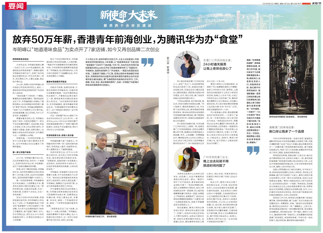 放弃50万年薪,香港青年前海创业,为腾讯华为办“食堂”