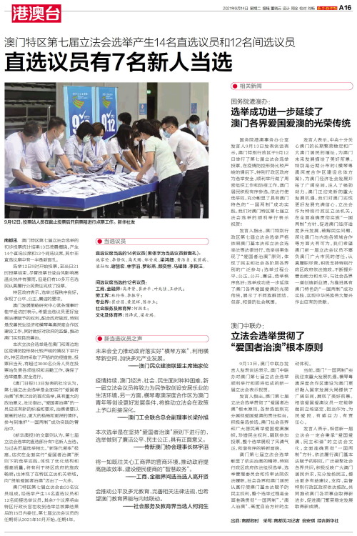南都讯 澳门特区第七届立法会选举的初步投票统计结果13日凌晨揭晓,产生14个直选议席和12个间选议席,其中在直选议席中有一半是新面孔。 选举12日9时开始投票,至当日21时投票结束。尽管投票日受
