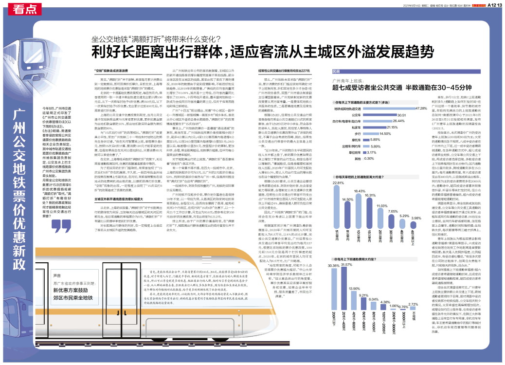 今年8月,广州市交通运输局正式印发了《广州市公共交通票价优惠管理办法》(以下简称《办法》)。《办法》明确,普通乘客享受的常规公共交通票价优惠措施将由相关企业负责制定。其中城市轨道交通线路票价优惠措