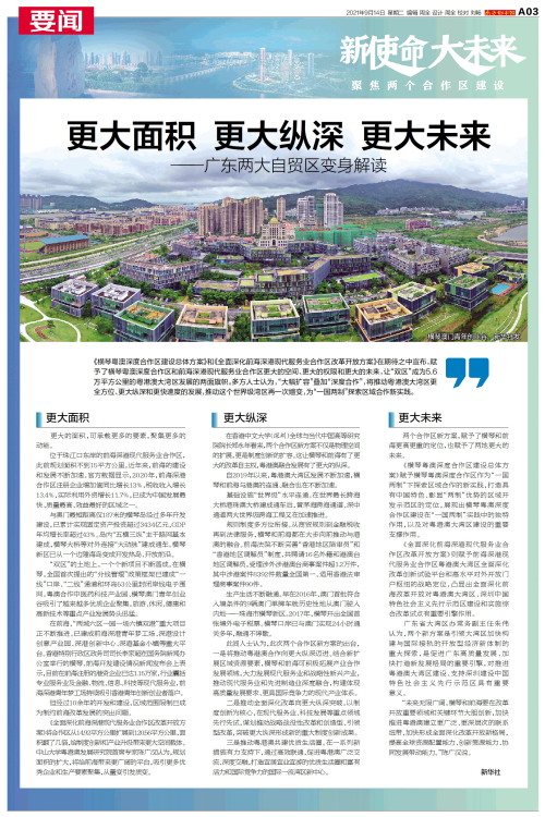 《横琴粤澳深度合作区建设总体方案》和《全面深化前海深港现代服务业合作区改革开放方案》在期待之中宣布,赋予了横琴粤澳深度合作区和前海深港现代服务业合作区更大的空间、更大的权限和更大的未来,让“双区”
