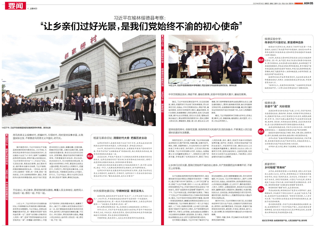 新华社榆林9月15日电 中共中央总书记、国家主席、中央军委主席习近平近日在陕西省榆林市考察时强调,要坚决落实党中央决策部署,坚持稳中求进工作总基调,完整、准确、全面贯彻新发展理念,弘扬光荣革命传统