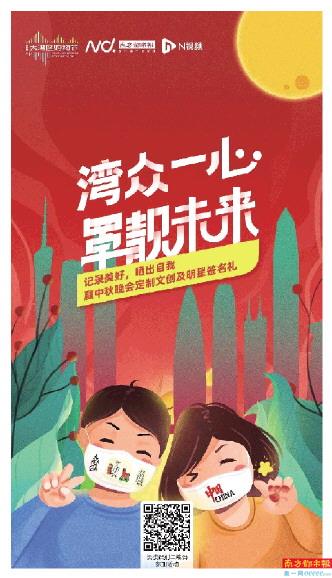 为期20天的首届大湾区购物节火热进行中,9月14日以来,时代楷模、社会各界名人贤达、新经济新职业代表等,相继加入南方都市报、N视频发起的大湾区购物节“湾众一心 罩靓未来”我为大湾区代言接力活动,组成“大湾区南友团”,戴上印有励志话语的文创口罩,为共建美好大湾区强势打call。首次亮相即刷爆全城,掀起一股“表白湾区”热。目前,社会各界50余位大咖已开启全城大“接龙”,部分京东快递小哥、美团外卖骑手将戴文创口罩送货,传递正能量,并将温暖传递给更多人。