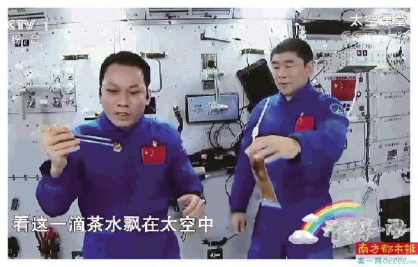 用筷子夹茶水吃的场面,你见过吗?在《开学第一课》的现场,航天员汤洪波为我们展示了这一有趣的现象。只见汤洪波手握一双用绳子连接在一起的筷子,将漂浮在太空舱中状似果冻的“茶水”夹起,像吃菜一样吃进嘴里。